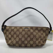 Deze pre-loved Gucci Boat Pochette is uitgevoerd in het iconische GG canvas met zwarte leren details. De tas heeft een compact en tijdloos silhouet en is afgewerkt met een korte schouderband, waardoor hij zowel elegant als praktisch is in gebruik. Het item vertoont lichte, normale gebruikssporen passend bij de leeftijd, maar verkeert overall in een zeer goede vintage staat. Een stijlvolle en veelzijdige tas die moeiteloos past bij zowel casual als meer geklede looks.
